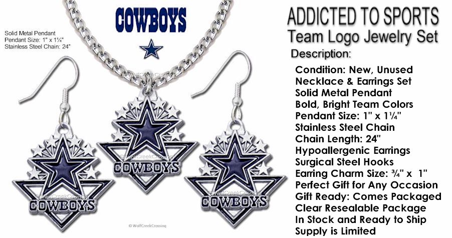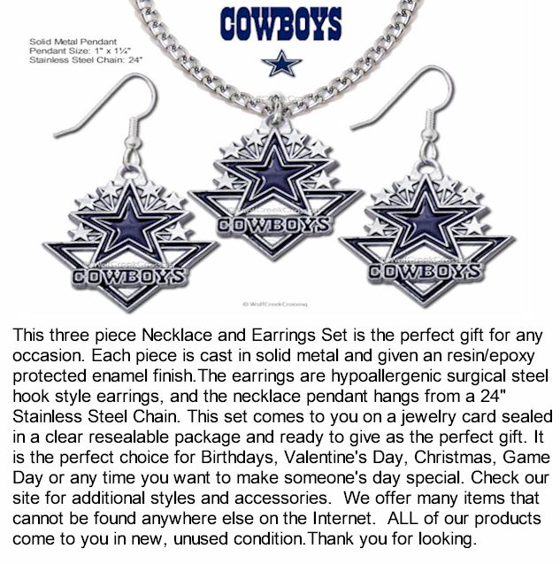 Dallas Cowboys Necklace & Earrings Set NFL Licensed