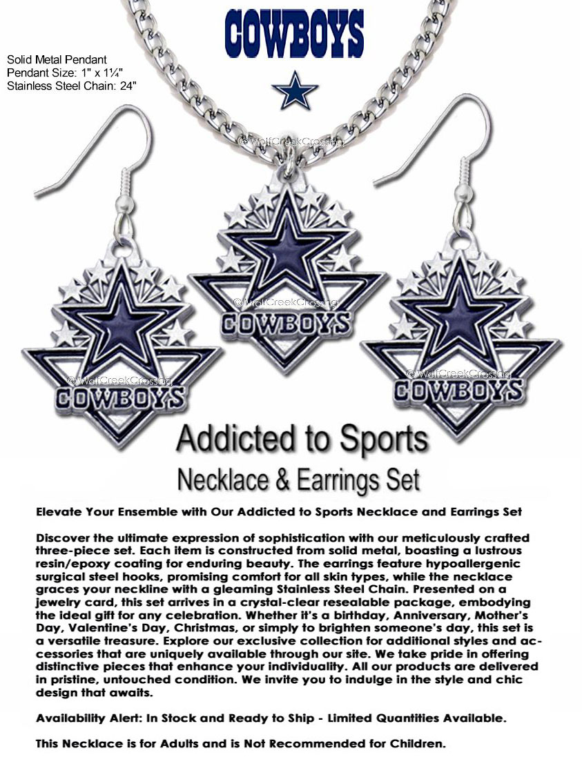 Celebrate your team spirit with this Dallas Cowboys Jewelry Set, featuring a matching necklace and earrings combo crafted with precision and pride. NFL licensed and hypoallergenic, each piece balances sport-inspired charm with elegant durability—perfect for daily wear or gifting to the ultimate Cowboys fan.