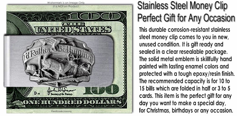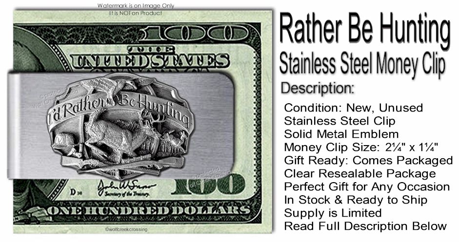 Rather Be Hunting Stainless Steel Money Clip Sportsman Deer Hunter