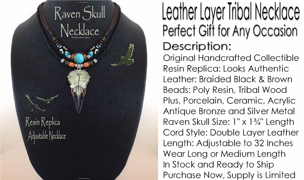 Raven Skull Necklace 2-Layer Tribal Gothic Wisdom